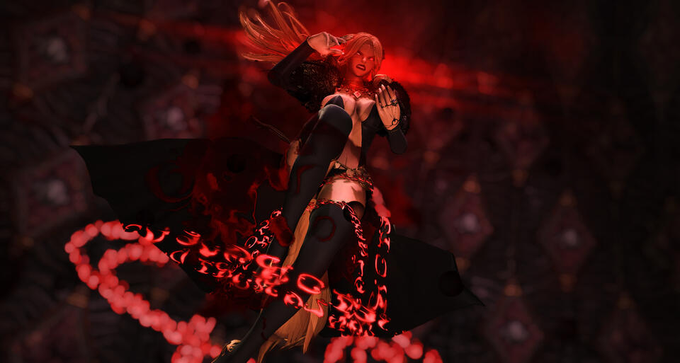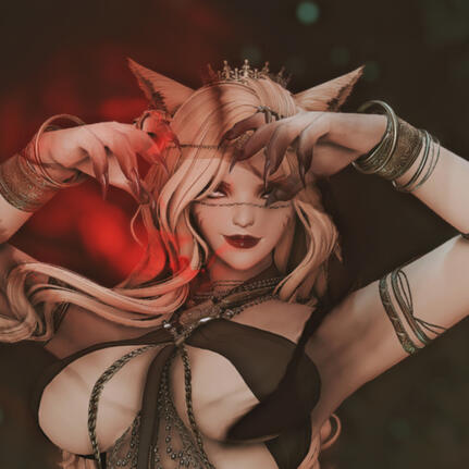Additional Information: At heart she's a practitioner of dangerous magics—of Blood and Black.Appearance: Deeply immersed in the hedonistic atmosphere of Ul'dah, T'alonne is no stranger to displays of vanity. Golden chains and exquisite jewels glitter from her forehead, her neck, fingers, and other parts of her silk-clad body that can possibly hold them.Personality: She's all magic and gold and fire—a prideful witch, temperamental and self-serving. On the other hand she can be warm, affectionate, and even indulgent... but one shouldn’t forget that she is an Ul’dahn; a snake burrowed in the sands, biding its time.Personal History: The young Miqo'te appeared in Ul'dah one day with nothing to her name, just another orphaned refugee on streets. Nevertheless, she's managed to rise through the stratified ranks of Ul'dah over the years, one year as the favorite lap cat of a trade prince, in another as the mistress of an Ossuary mage, and so on, all the while dreaming of vengeance.